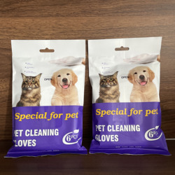 סיטונאי לוגו מותאם אישית לשטוף ללא חד פעמי ללא ארוג ניקוי כפפות מגבונים 6 יח/1 שקית עבור כלבים וחתולים